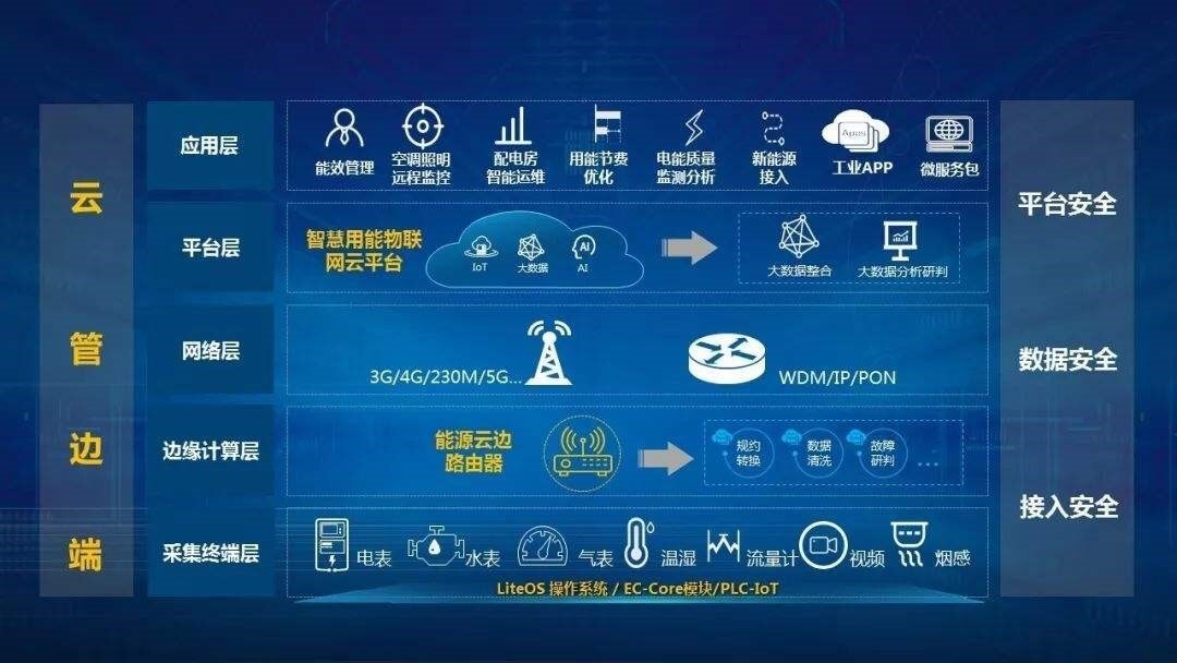 与南方电网合作研发新一代的云边协同配网主站,构建云边协同能力,基于5G+AI技术,按能源物联网的发展趋势来重新设计配用电系统体系架构,以数据为纽带,以平台的开放性整合赋能各分布式发电供应商、园区综合能源服务供应商、售电服务商、电动汽车充电服务商,提高对配电物联网海量信息的感知能力、处理能力及决策能力。