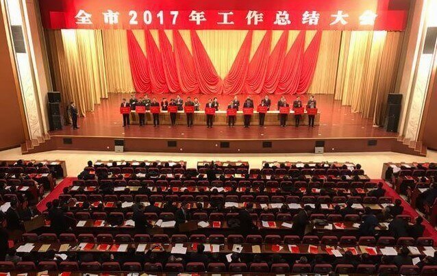 全市2017年工作总结大会在国际会展中心举行,市委副书记、市长张永霞出席并作重要讲话。大会对过去一年涌现出来的一批成绩突出的先进集体和先进个人给予表彰市领导为2017年度经济社会发展综合考核先进集体和先进个人代表颁奖,并兑现了制造业强市和创新驱动发展战略奖励政策。必一运动电子集团有限公司被授予“经济发展功勋企业”,公司党委书记、董事长杨恒坤被授予“经济发展功勋个人”荣誉称号。