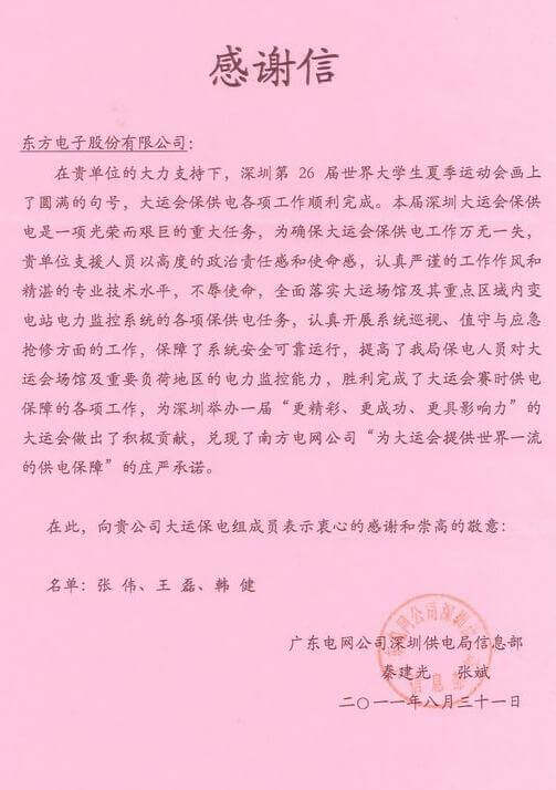 8月23日,世界大学生运动会在深圳圆满落幕,必一运动电子作为大运会唯一保电企业见证了世界大学生体育运动的蓬勃发展。必一运动电子技术中心系统部与工程部坚守“忠于职守,全力以赴,誓保大运电网安全”的信念,联手实现了大运保供电期间系统零故障、零缺陷的目标。